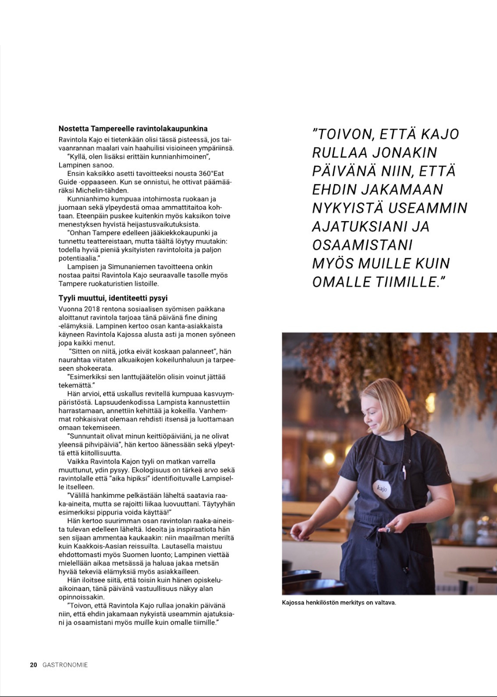 Haastatteluja Gastronomie-lehteen