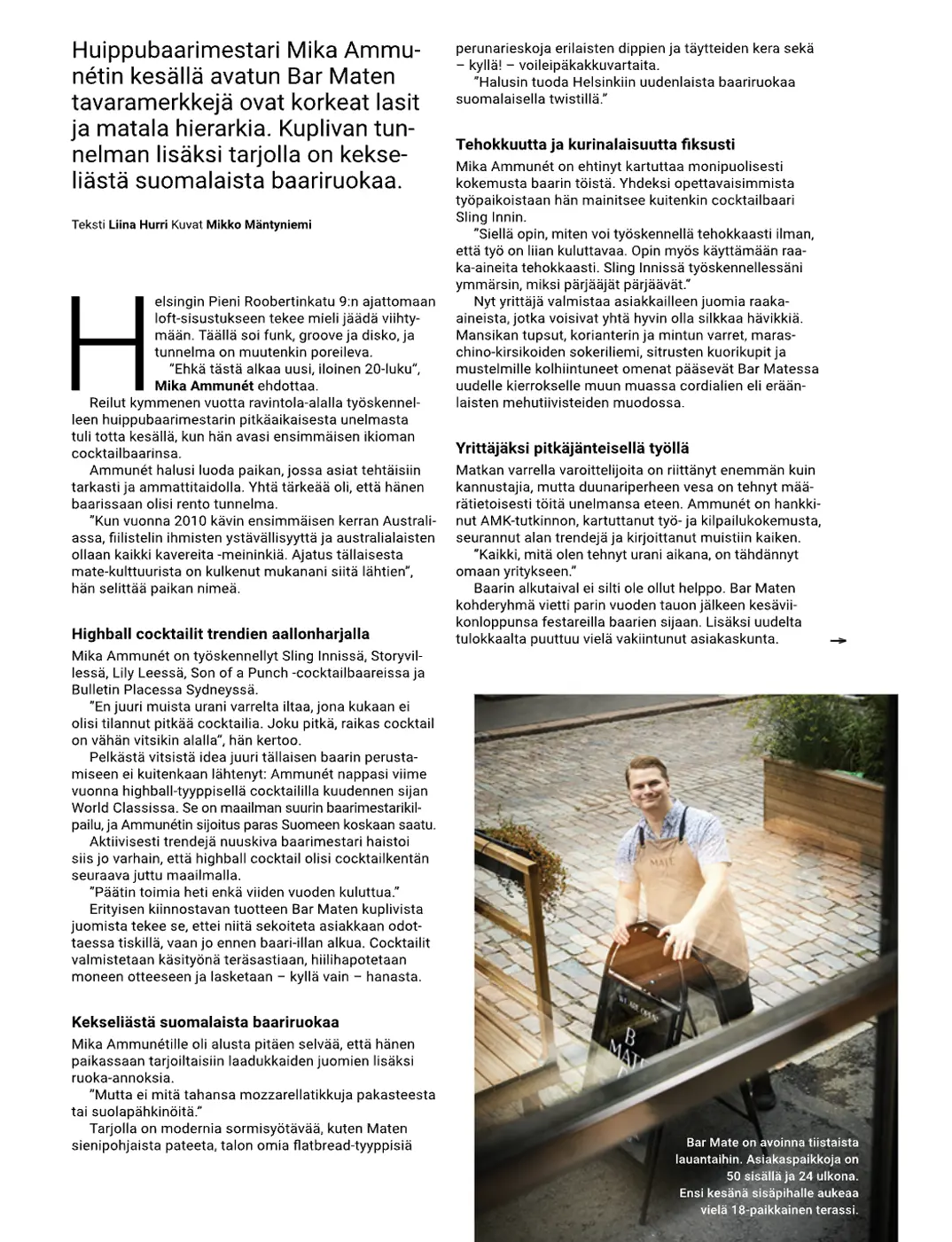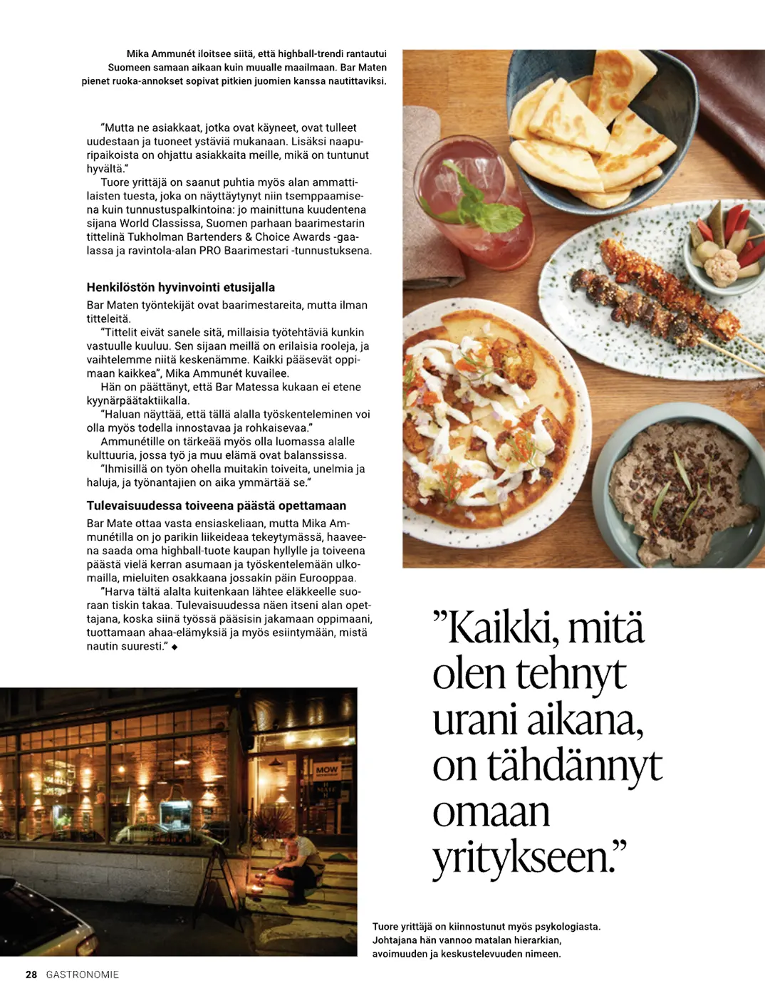 Olen kirjoittanut ravintola-alan ammattilaisille suunnattuun lehteen sekä kansijuttuja että pienempiä haastatteluja. Lehteä julkaisee Wihuri Metro-tukku. Printti julkaistaan kahdesti vuodessa, mutta artikkeleita on mahdollista lukea myös verkossa.
